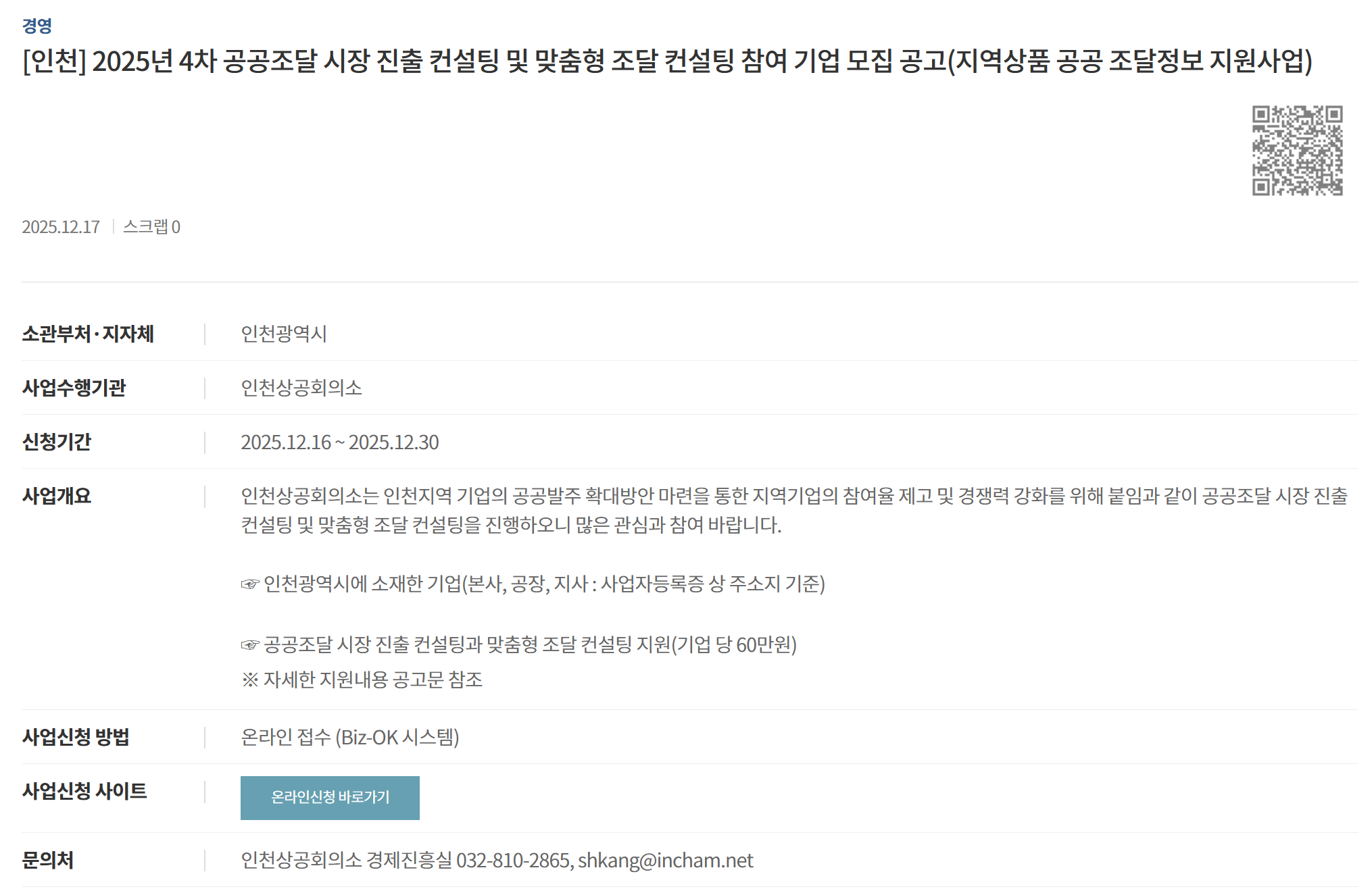 [인천] 2025년 4차 공공조달 시장 진출 컨설팅 및…