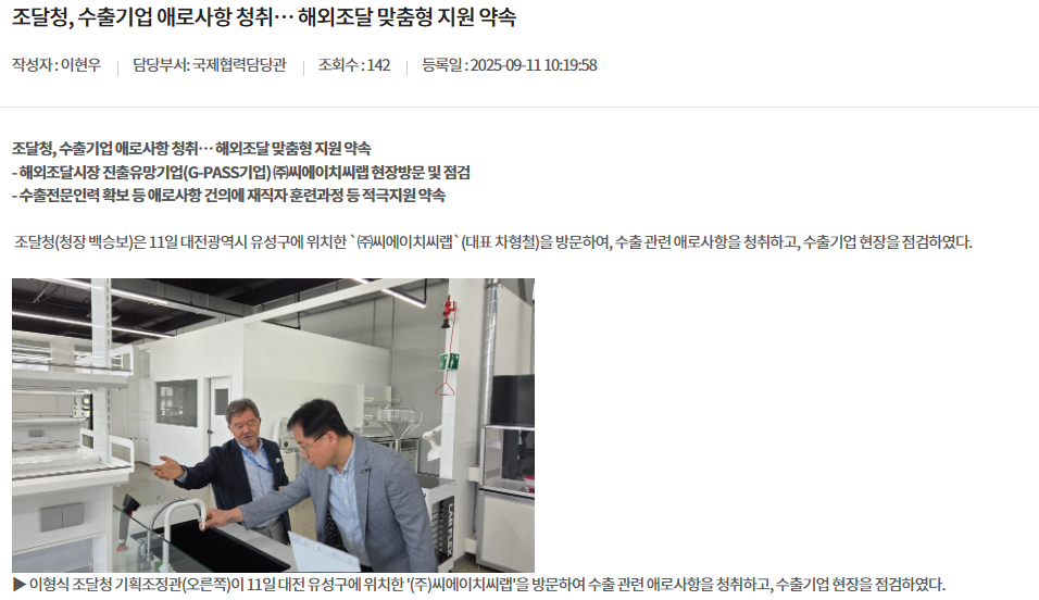 조달청, 수출기업 애로사항 청취… 해외조달 맞춤형 지원…
