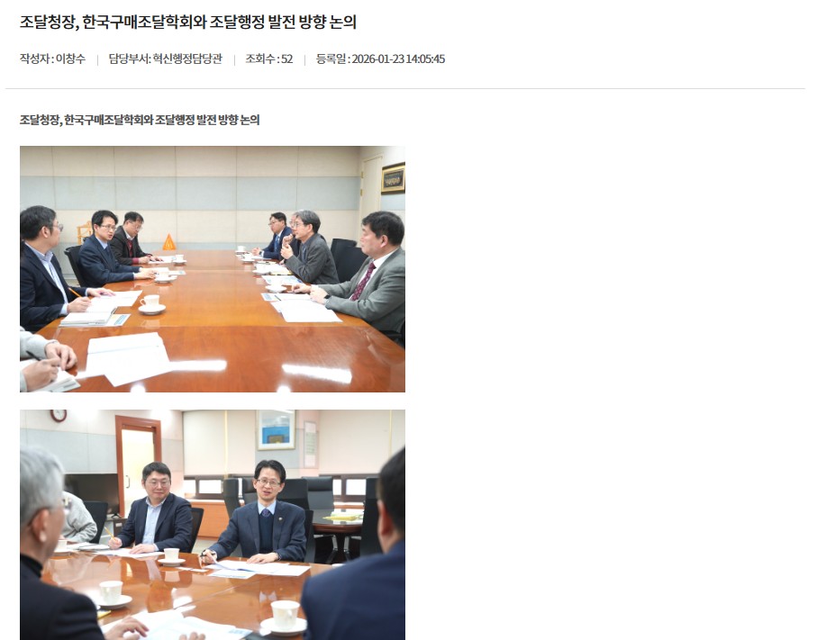 조달청장, 한국구매조달학회와 조달행정 발전 방향 논의