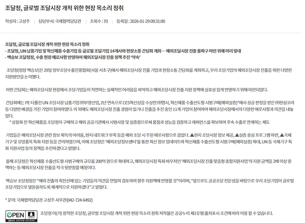 조달청, 글로벌 조달시장 개척 위한 현장 목소리 청취