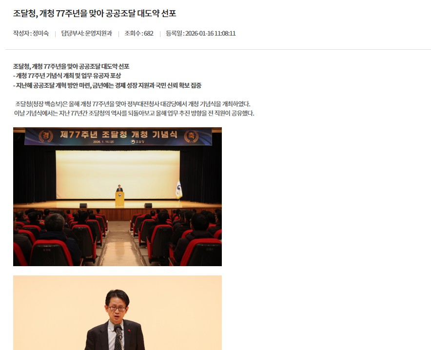 조달청, 개청 77주년을 맞아 공공조달 대도약 선포